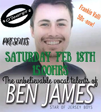 TORROX – De Britse zanger/gitarist Ben James treedt zaterdagmiddag 18 februari op bij O’Leary’s Irish Bar in de kustplaats Torrox. Het optreden begint rond de klok van 15.00 uur.