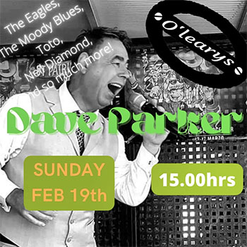TORROX – De Britse zanger Dave Parker treedt zondagmiddag 19 februari op in de kustplaats Torrox, op circa tien kilometer van Nerja gelegen. Parker is dan te beluisteren bij O’Leary’s Irish Bar aan de Paseo Marítimo de Ferrara.