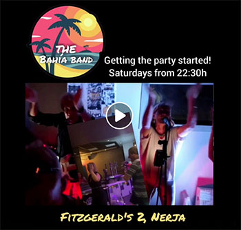 NERJA – The Bahía Band treedt zaterdagavond 4 maart op bij Fitzgerald’s Bar II aan de Calle Antonio Millón 7 in het centrum van Nerja.