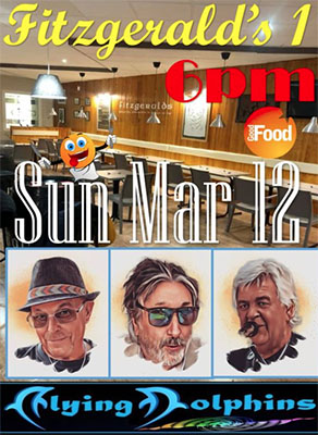 NERJA – De regionaal vermaarde en populaire band The Flying Dolphins speelt zondagavond 12 maart weer bij Fitzgerald’s Bar I in Nerja.