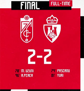 Daarbij bleef het niet want twee minuten na de gelijkmaker namens de bezoekers de leiding in de wedstrijd via een treffer van Yuri de Souza: 1-2. Pas diep in blessuretijd redde Alberto Perea de meubelen voor de thuisclub met zijn gelijkmaker: 2-2.