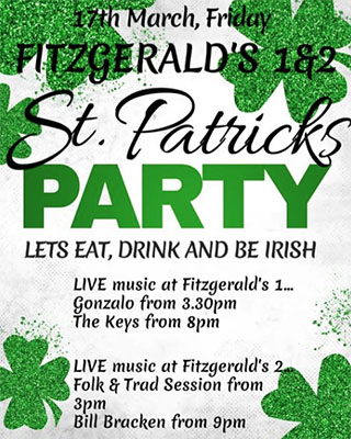 NERJA – Bij Fitzgerald’s Bar I in Nerja wordt vrijdag 17 maart de Ierse nationale feestdag St. Patriks Day gevierd. Dit gebeurt vanaf 15.30 uur met optredens van diverse artiesten.