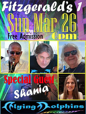 NERJA – De regionaal vermaarde en populaire band The Flying Dolphins speelt zondagavond 26 maart bij Fitzgerald’s Bar I in Nerja.