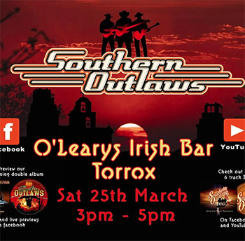 TORROX – De band Southern Outlaws treedt zaterdagmiddag 25 maart op in de kustplaats Torrox, op circa tien kilometer van Nerja gelegen. Dit gebeurt in O’Leary’s Irish Bar aan de Paseo Maritímo de Ferrara.