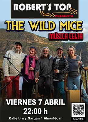 ALMUNECAR – In bar/restaurant Robert’s Top in Almuñécar staat vrijdagavond 7 april een optreden geprogrammeerd van de band The Wild Mice. Het optreden begint rond 22.00 uur.