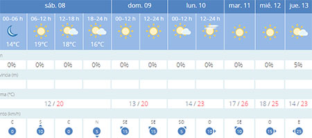 NERJA – Véél zon, weinig wind, geen neerslag en temperaturen die dagelijks oplopen tot gemiddelden net iets boven de twintig graden Celsius. Dat zijn de weersverwachtingen voor Nerja en omgeving volgens de meteorologen van het weerstation Aemet (Agencia Estatal de Meteorología) voor dit paasweekeinde én de komende week.