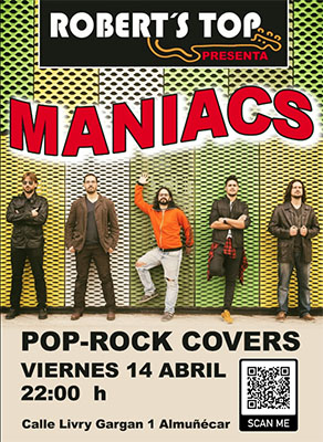 ALMUNECAR – In bar/restaurant Robert’s Top in Almuñécar staat vrijdagavond 14 april een optreden geprogrammeerd van de band The Maniacs. Het optreden begint rond 22.00 uur.