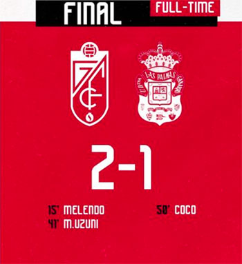 GRANADA – In het eigen Nuevo Los Cármenes-stadion heeft Granada CF zaterdagmiddag 15 april een nieuwe stap gezet richting promotie/terugkeer naar het hoogste Spaanse voetbalniveau. De Andalusische formatie won de topper in de Segunda División tegen de rechtstreekse concurrent UD Las Palmas met 2-1.