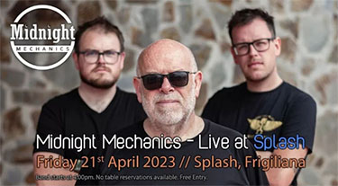 FRIGILIANA – De formatie Midnight Mechanics (met onder anderen de in de Axarquía-regio populaire zanger en gitarist Lee Townsend in de gelederen) treedt vrijdagmiddag 21 april op in het bergdorp Frigiliana, op circa zeven kilometer landinwaarts van Nerja gelegen.