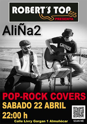ALMUNECAR – In bar/restaurant Robert’s Top in de kustplaats Almuñécar staat zaterdagavond 22 april een optreden geprogrammeerd van het Duo AliÑa 2. Het optreden begint rond 22.00 uur.