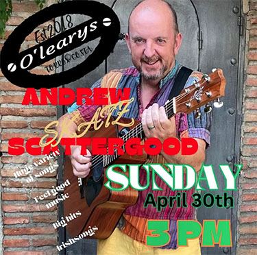 TORROX – Bij O’Leary’s Irish Bar aan de Paseo Maritímo de Ferrara in Torrox treedt zondagmiddag 30 april de zanger/gitarist Andrew ´Skatz´ Scattergood op.