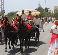 De San Isidro-bedevaartstocht vanaf de El Salvador-kerk bij het Balcón de Europa door de stad en over de oude kustweg N-340 – naar het feestterrein bij de Grotten van Nerja in Maro. Deze kilometers lange sliert trekt jaarlijks duizenden toeschouwers, die al feestvierend de route omzomen.