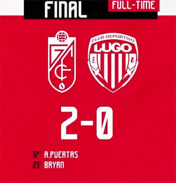 Granada kende tegen Lugo weinig problemen en stond na twintig minuten al met 2-0 voor. De doelpunten kwamen van Antonio Puertas en Bryan Zaragoza-Martínez. Zaterdag 20 mei speelt Granada een uitwedstrijd tegen CD Mirandés, een week later wordt de competitie afgesloten met een thuisduel tegen CD Leganés.