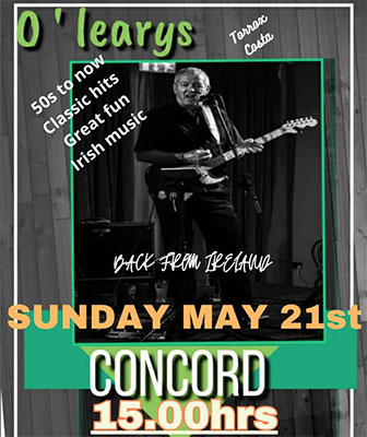 TORROX – In Torrox-Costa treedt zondagmiddag 21 mei de Ierse zanger en gitarist Concord op. Dit gebeurt bij O’Leary’s Irish Bar aan de Paseo Marítimo de Ferrara.