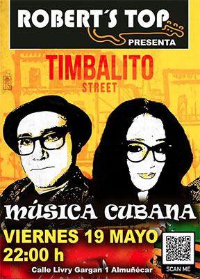 ALMUNECAR – Bij bar/restaurant Robert’s Top in Almuñécar staat vrijdagvond 19 mei een optreden geprogrammeerd van de band Timbalito Street. Het optreden begint rond de klok van 22.00 uur.