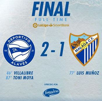 Halverwege de tweede helft beet Málaga CF nog even van zich af toen José-Luis Muñoz-Léon de gelijkmaker liet optekenen (1-1). Drie minuten voor tijd viel het doek voor Málaga definitief met een tweede treffer voor Deportivo Alavés. Deze kwam op naam van Antonio Moyo-Vega.