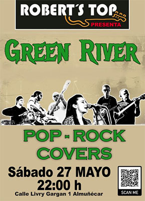 ALMUNECAR – In bar/restaurant Robert’s Top in Almuñécar staat zaterdagvond 27 mei een optreden geprogrammeerd van de band Green River. Het optreden begint rond 22.00 uur en duurt tot circa middernacht.