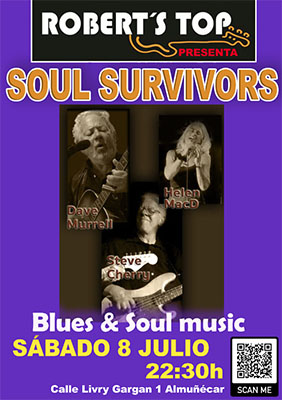 ALMUNECAR – Bij bar/restaurant Robert’s Top in Almuñécar staat zaterdagavond 8 juli een optreden geprogrammeerd van de band Soul Survivors. Het optreden begint rond 22.30 uur.