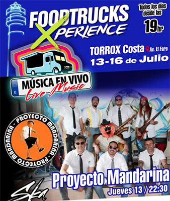 Het optreden vindt plaats op de Avenida El Faro en begint rond de klok van 22.30 uur. Het Foodtrucks Experience-festival begint van donderdag 13 juli tot en met zondag 16 juli iedere avond om 19.00 uur. De uit Nerja afkomstige band Proyecto Mandarina brengt voornamelijk ska-muziek ten gehore.