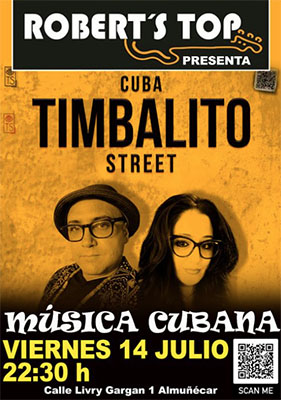ALMUNECAR – Bij bar/restaurant Robert’s Top in Almuñécar staat vrijdagvond 14 juli een optreden geprogrammeerd van de band Timbalito Street. Het optreden begint rond de klok van 22.30 uur.