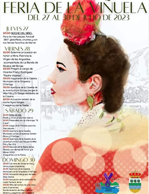 Vrijdag 28 juli beginnen de festiviteiten om 21.00 uur, een dag later start het Feria de Día alm om 13.30 uur. Op zondagavond 30 juli wordt het Feria de La Viñuela afgesloten met een festiviteitenprogramma vanaf 18.00 uur.
