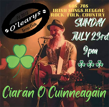 TORROX – De Ierse zanger en gitarist Cíarán Ó´Cuínneagáin verzorgt zondagavond 23 juli een akoestisch optreden in de kustplaats Torrox, op circa tien kilometer van Nerja gelegen. Dit gebeurt op het terras van O’Leary’s Irish Bar aan de Paseo Marítimo de Ferrara.
