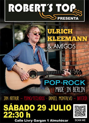 ALMUNECAR – Bij bar/restaurant Robert’s Top in Almuñécar staat zaterdagavond 29 juli een optreden geprogrammeerd van de gitarist Ulrich Kleemann. Het optreden begint rond 22.30 uur.