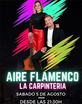 COMPETA – Het duo Aire Flamenco treedt zaterdagavond 5 augustus op bij La Carpinteria Bar in het dorp Cómpeta. Het optreden begint rond 21.30 uur.