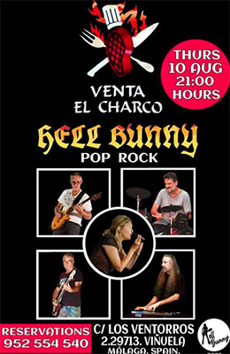 LOS ROMANES – In het dorp Los Romanes, behorend tot de gemeente La Viñuela en te vinden naast het meer van Viñuela, treedt donderdagavond 10 augustus de poprock-band Hell Bunny op. Dit gebeurt bij restaurant Venta El Charco aan de Calle Los Ventorros.