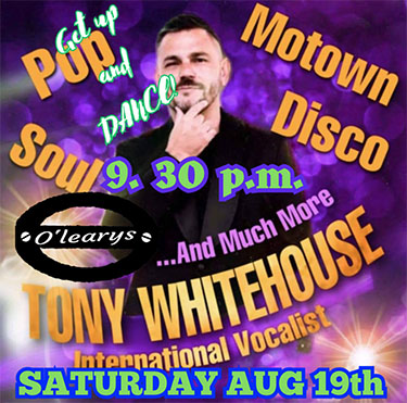 TORROX – De Britse zanger Tony Whitehouse treedt zaterdagavond 19 augustus op bij O’Leary’s Irish Bar in de kustplaats Torrox. Het optreden begint rond de klok van 21.30 uur.