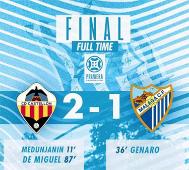 De thuisclub kwam zaterdagavond al na elf minuten spelen op voorsprong door een treffer van de Nederlandse Bosniër Haris Medunjanin. Genaro Rodríguez bracht Málaga na 36 minuten langszij (1-1) maar het sterkere Castellón trok toch aan het langste eind dankzij Jesús de Miguel (2-1). In de blessuretijd leek Málaga alsnog een punt over de streep te trekken maar deze treffer werd wegens buitenspel afgekeurd.
