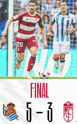 Na de rust leek het hek van de dam en dreigde Granada tegen een grote nederlaag aan te lopen. Door treffers van Martín Zubimendi (59ste minuut), Ander Barrenetxea (67ste minuut) én een eigen doelpunt van Miki Bosch (76ste minuut) liep de thuisclub uit naar een 5-1 voorsprong. Lucas Boyé (zeven minuten voor tijd) en Bryan Zaragoza (negende minuut van de extra tijd) gaven de eindstand voor Granada nog een iets beter aanzien: 5-3.