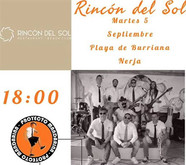 NERJA – De uit Nerja afkomstige ska- en reggaeband Proyecto Mandarina speelt dinsdagavond 5 september bij bar/restaurant Rincón del Sol in Nerja. Het optreden van deze, lokaal mateloos populaire, formatie staat gepland vanaf 18.00 uur.
