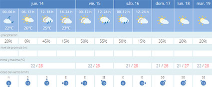 Aemet kondigde vorige week al regen en storm voor afgelopen weekeinde rond Nerja, maar sloeg met die voorspellingen (op een enkel verdwaald buitje na, red.) de plank volledig mis. Er viel wel regen aan de Costa del Sol, maar Nerja werd daarbij vrijwel volledig overgeslagen. Dit keer houden de meteorologen een slag om de arm en schatten zij zelf de kans dat het rond Nerja daadwerkelijk tot regen komt in op 50 procent. Vooral donderdag 14 september, vrijdag 15 september en zaterdag 16 september worden daarbij aangeduid als vermoedelijke regendagen.