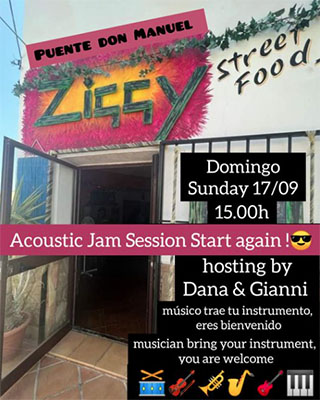 Het duo treedt veel op in de Axarquía-regio. Naast het optreden van ´Dana & Gianni´ is er een jam-session waarvoor iedereen is uitgenodigd zijn/haar eigen instrument mee te nemen.