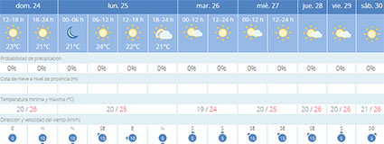 NERJA – De meteorologen van het weerstation Aemet (Agencia Estatal de Meteorología) verwachten deze week én voor het komend weekeinde veel zon en gemiddelde dagtemperaturen van circa 26 graden Celsius rond Nerja.