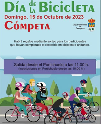 COMPETA – In het bergdorp Cómpeta staat zondag 15 oktober voor de vijftiende keer de jaarlijkse ‘Día de la Bicicleta’ op het programma. De deelnemers vetrekken tussen 11.00 uur ’s morgens en 14.00 uur ´s middags vanaf El Portichuelo.
