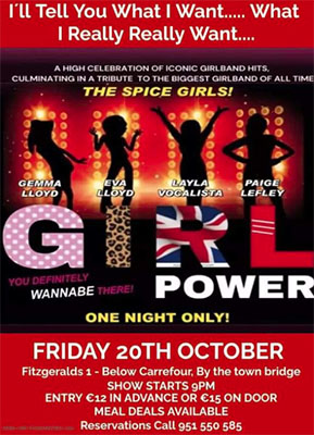 NERJA – De coverband The Spice Girls treedt zaterdagavond 21 oktober op bij Fitzgerald’s Bar I, op de hoek van park Verano Azul onder het pand van de Carrefour-supermarkt in Nerja.