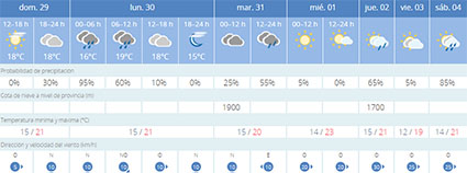 NERJA – De Spaanse meteorologen blijven, ondanks het feit dat ze de afgelopen weken meermalen de plank volledig missloegen, volharden in neerslagverwachtingen voor Nerja en directe omgeving. Zo wordt door het weerstation Aemet (Agencia Estatal de Meteorología) de kans op regen in de nacht van zondag 29 op maandag 30 oktober momenteel ingeschat op liefst 95 procent.