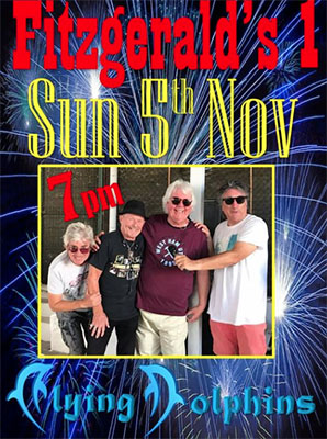 NERJA – De regionaal vermaarde en populaire band The Flying Dolphins speelt zondagavond 5 november weer bij Fitzgerald’s Bar I in Nerja. De bar is te vinden op de hoek van park Verano Azul (Calle Antonio Ferrandis Chanquete) onder het pand van de Carrefour-supermarkt in Nerja.