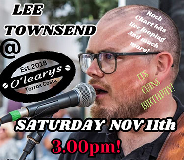TORROX – De Britse zanger/gitarist Lee Townsend treedt zaterdagmiddag 11 november op bij O’Leary’s Bar aan de Paseo Maritímo de Ferrara in Torrox-Costa. Het optreden begint om circa 15.00 uur, de toegang is vrij.