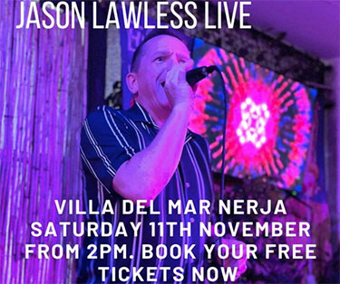 MARO – De zanger Jason Lawless treedt zaterdagmiddag 11 november op bij camping Villa del Mar in Maro (aan de kust naast Nerja gelegen). Het optreden is vrij toegankelijk, de show begint rond de klok van 14.00 uur en duurt vrijwel de gehele middag.