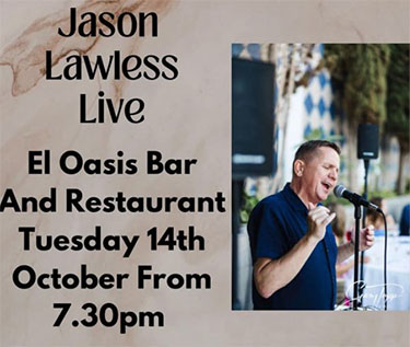 PUNTA LARA – Bij Bar Oasis in Punta Lara, een dorp aan de kust nèt buiten Nerja richting Torrox, treedt dinsdagavond 14 november de zanger Jason Lawless op. De bar is te vinden aan de Calle María 2.