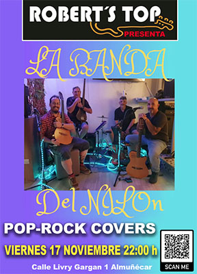 ALMUNECAR – In bar/restaurant Robert’s Top in Almuñécar staat vrijdagavond 17 november een optreden geprogrammeerd van La Banda del Nilon. Het optreden begint rond 22.00 uur.