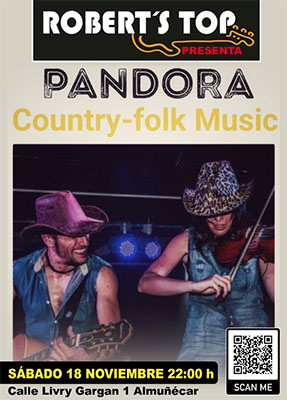 ALMUNECAR – In bar/restaurant Robert’s Top in Almuñécar staat zaterdagavond 18 november een optreden geprogrammeerd van het Duo Pandora. Het optreden begint rond 22.00 uur.