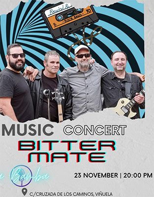 LA VINUELA – In bar La Bamba in het dorp La Viñuela, naast het gelijknamige meer boven Vélez-Málaga, staat donderdagavond 23 november een optreden van de formatie Bitter Mate op het programma.