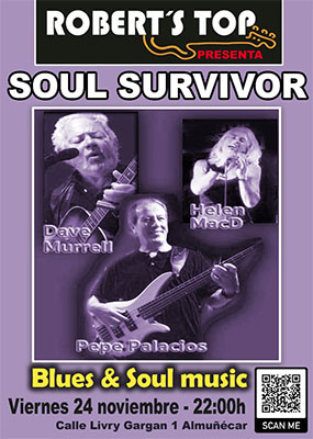 ALMUNECAR – Bij bar/restaurant Robert’s Top in de kustplaats Almuñécar staat vrijdagavond 24 november een optreden geprogrammeerd van de band Soul Survivor. Het optreden begint rond 22.00 uur.