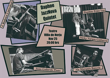 NERJA – Het Daphne JazzNova Quintet verzorgt op zaterdagavond 25 november een jazzconcert in het Centro Cutural Villa de Nerja.