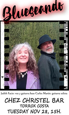 TORROX-COSTA – In bar Chez Christel in de kustplaats Torrox, op zo’n tien kilometer afstand van Nerja, staat dinsdagmiddag 28 november een optreden gepland van het bluesduo Judith Facio (gitaar en zang) en Carlos Martín (gitaar).