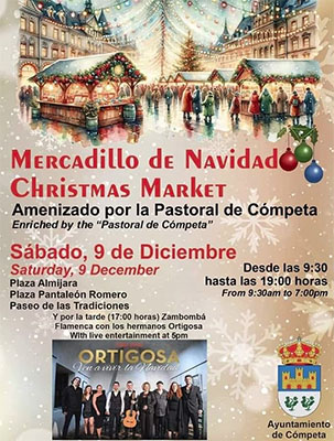 CÓMPETA – Op de Plaza Almijara van het bergdorp Cómpeta is op zaterdag 9 december een kerstmarkt te bezoeken.